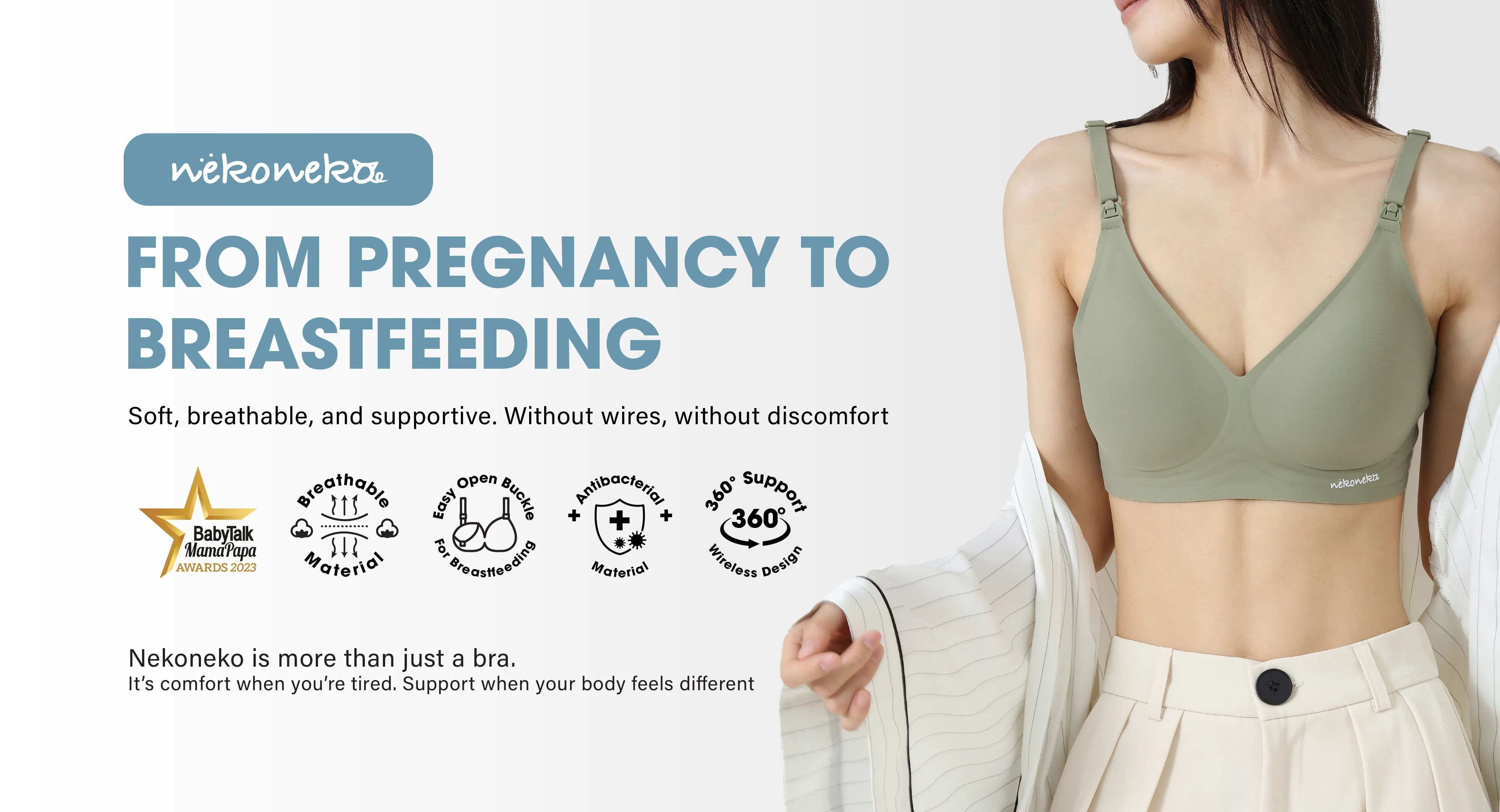 Because motherhood deserves gentle love. From pregnancy to breastfeeding, we’re here to make your journey softer, calmer, and kinder. No wires, no pressure — just comfort that understands you. We’re not just a bra. We’re your quiet support, every step of the way.